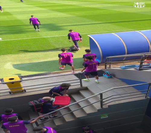 今日巴萨进行了训练,为本场比赛备战。巴萨还在社交媒体上晒出训练视频,并配文写道:“各国家队球员恢复训练。”